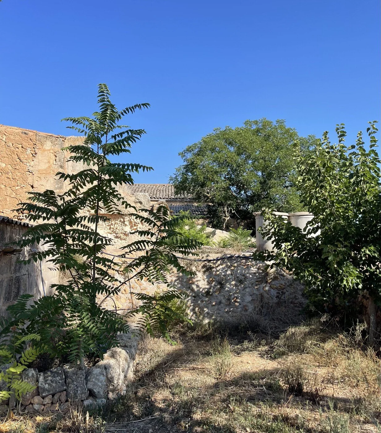 Traditional outbuildings: former stables, storage barns, and a Mallorcan-style windmill.