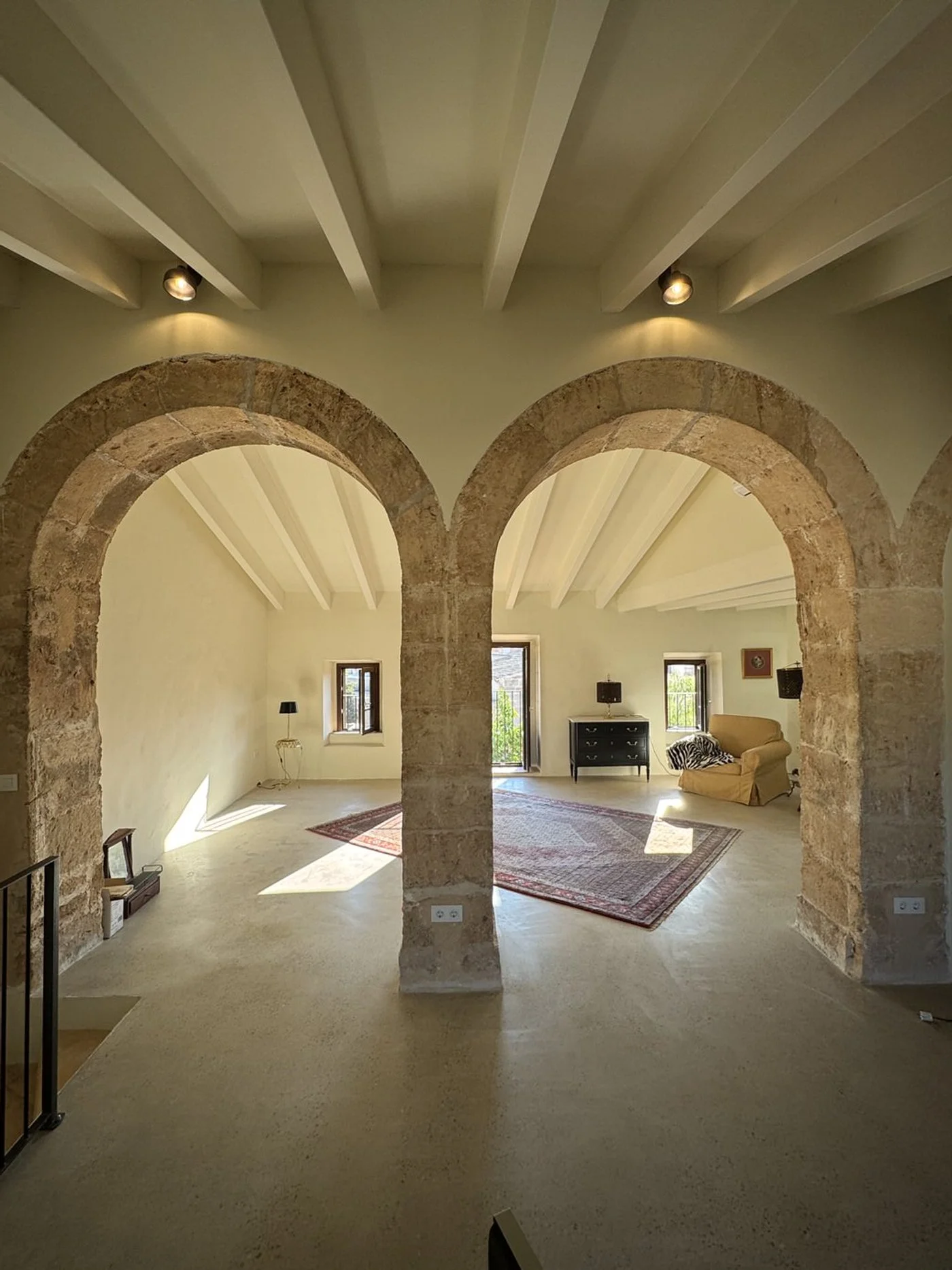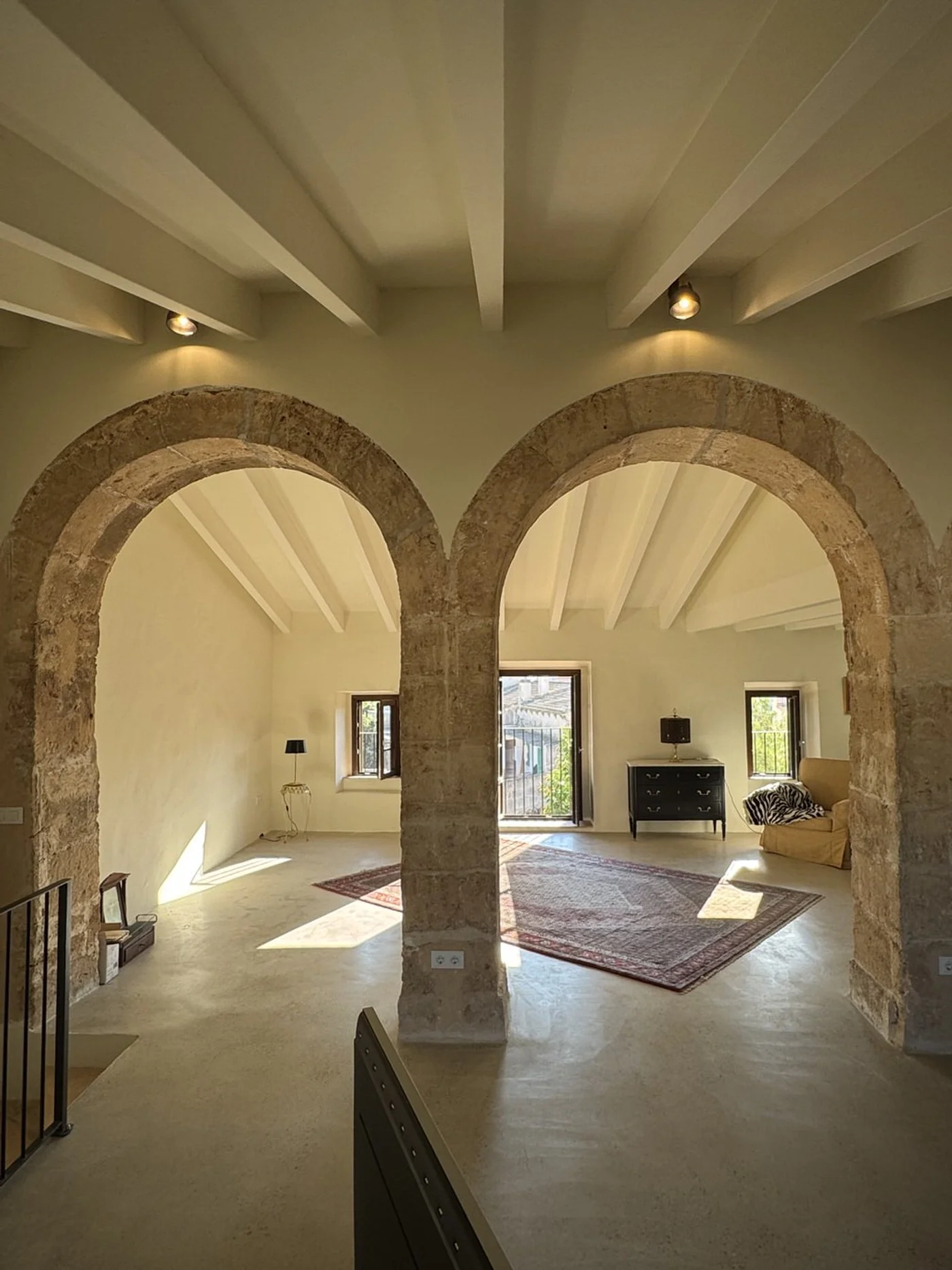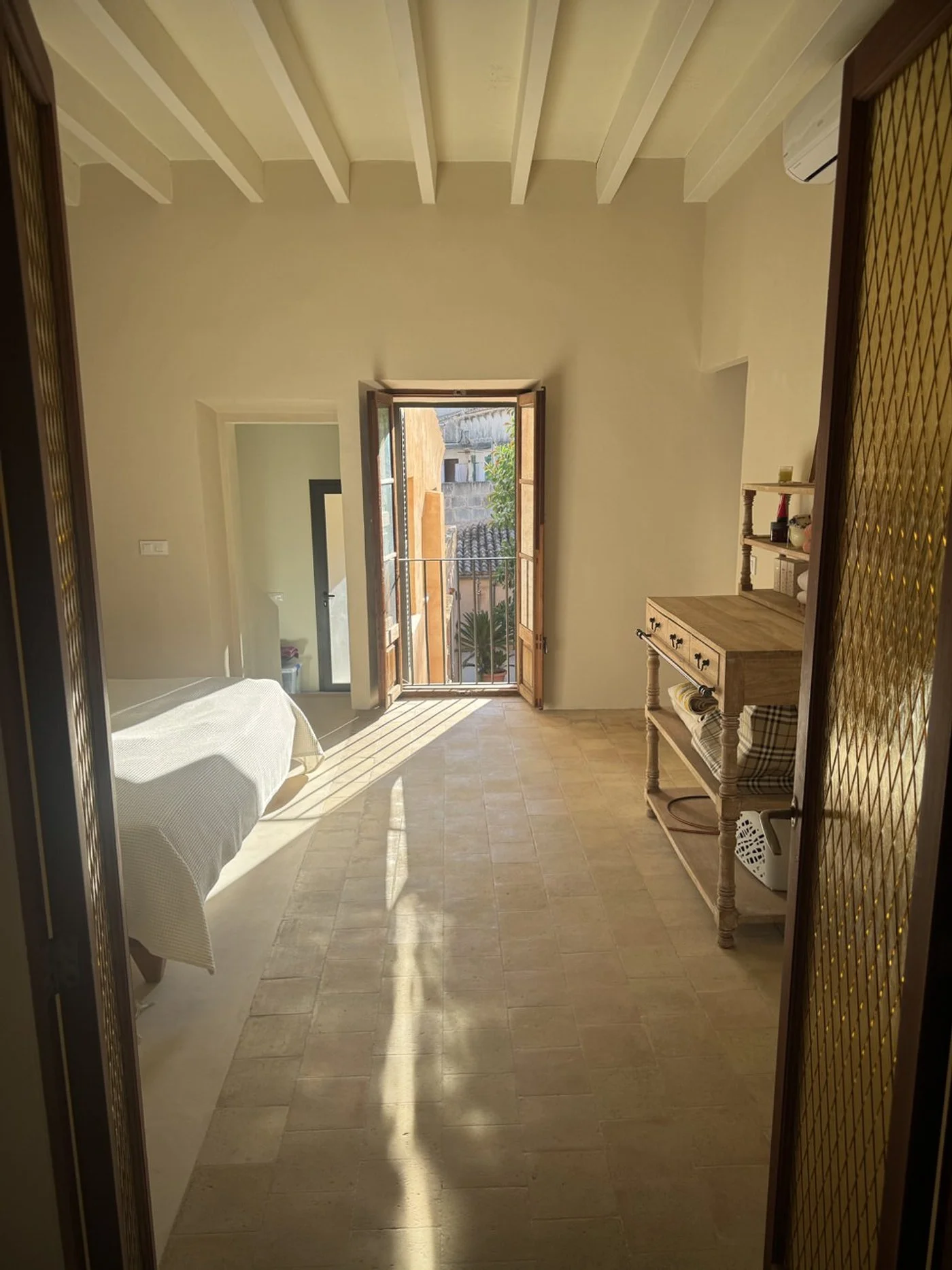 Authentic details: Preserved Mallorcan elements such as hydraulic tiles, niches, and microcement floors.