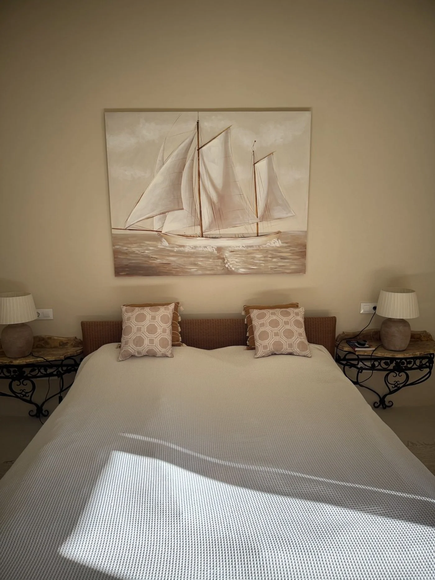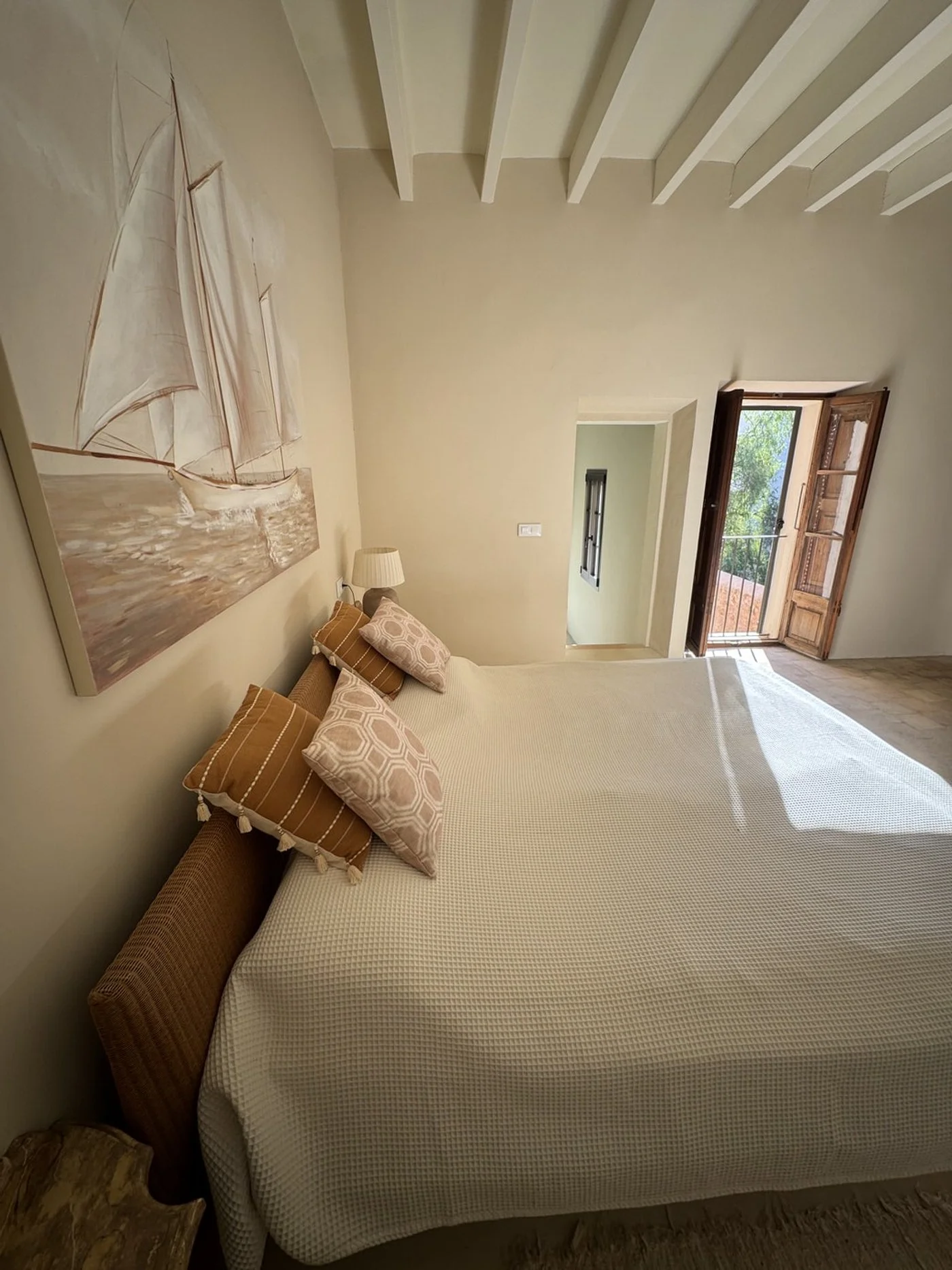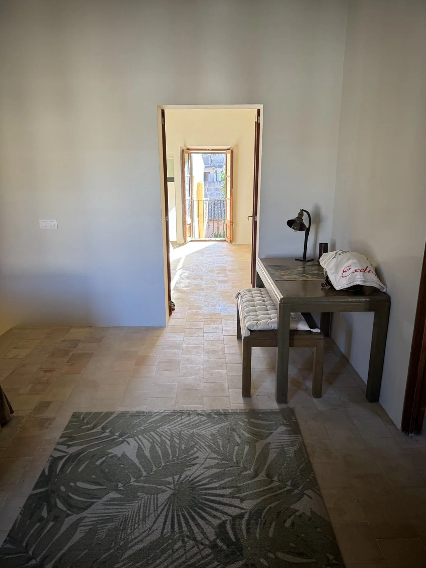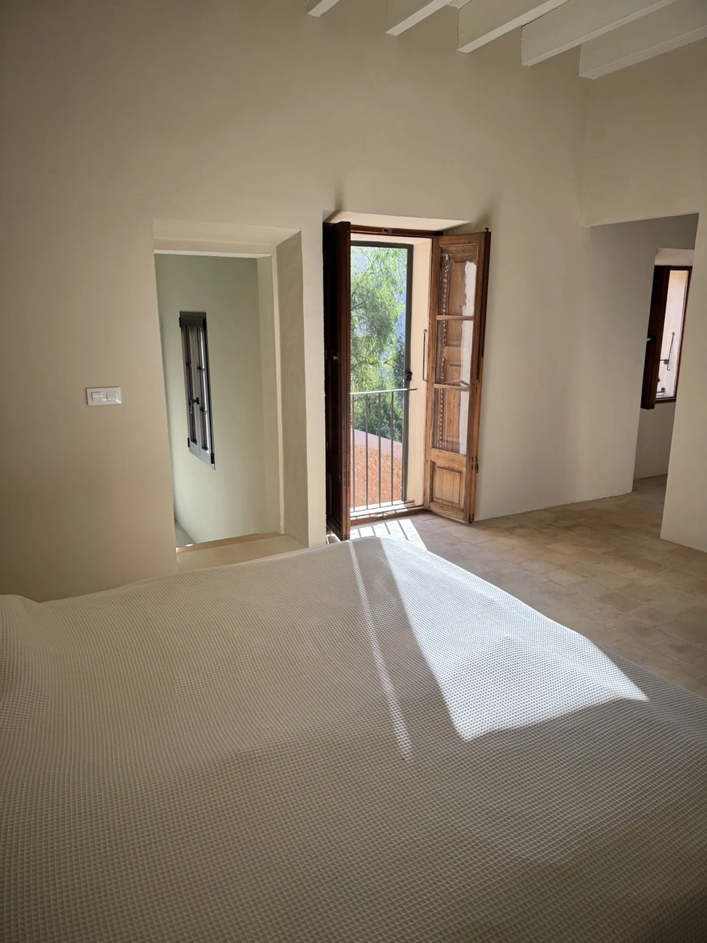 Authentic details: Preserved Mallorcan elements such as hydraulic tiles, niches, and microcement floors.